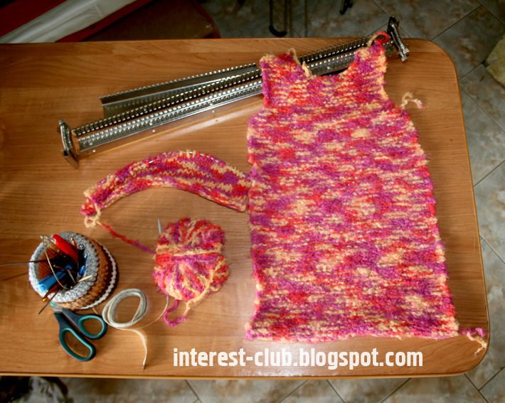 Спецификация: пряжа Yarnart Punky и всякие остатки, аппарат вязальный MB-1, спицы № 4, фетр (рыхловат получился), мулине, бисер и пуговица в виде божьей коровы.