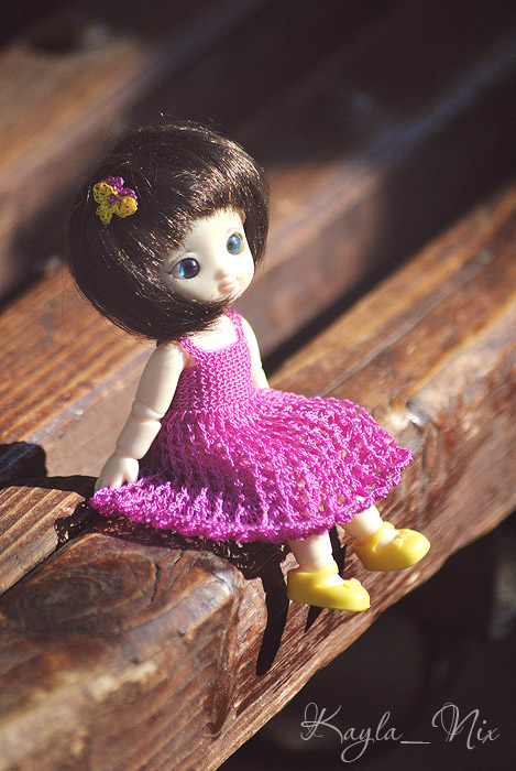 ceza_y_cezar, я с радостью могу показать свои самые маленькие вязанные платьица! Они связаны из катушечной вискозы крючком №0.5 для одной очаровательной и проказливой девочки ростом 11 см.