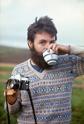 Также обнаружился вот такой свитер. Подозреваю, что это 1969 или 1970 год, время записи Let It Be и параллельно первого сольного альбома, который так и назывался - McCartney. Похоже, что фото сделано в деревне, на шотландской ферме Пола.