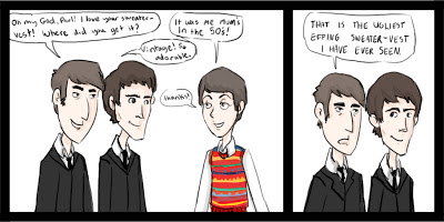 За последнее время я несколько раз наткнулась в энторнетах на фото Битлов в вязаных жилетках и свитерах. Это, безусловно, знак :) Ну потому что, как вы понимаете, все, связанное с Битлз (оп, каламбур :) , непременно должно быть знаком :). И хотя их биографии вплоть до последнего пука за полвека рассмотрены под лупой миллион раз, тем не менее, бывает интересно взглянуть на любимчиков снова. И, может быть, даже под новым для себя углом. Вот честно, хоть я и битломан со стажем и даже помню почти все из этих жилеток, но глазами вязальщицы я на них еще не смотрела. Так чего же мы ждем?