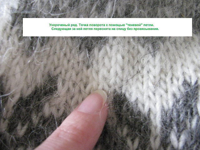 zuikodelie, конечно) в http://techknitting.blogspot.com , что петлю, следующую за петлей поворота, лучше снимать не провязывая. И вид полотна стал намного лучше: