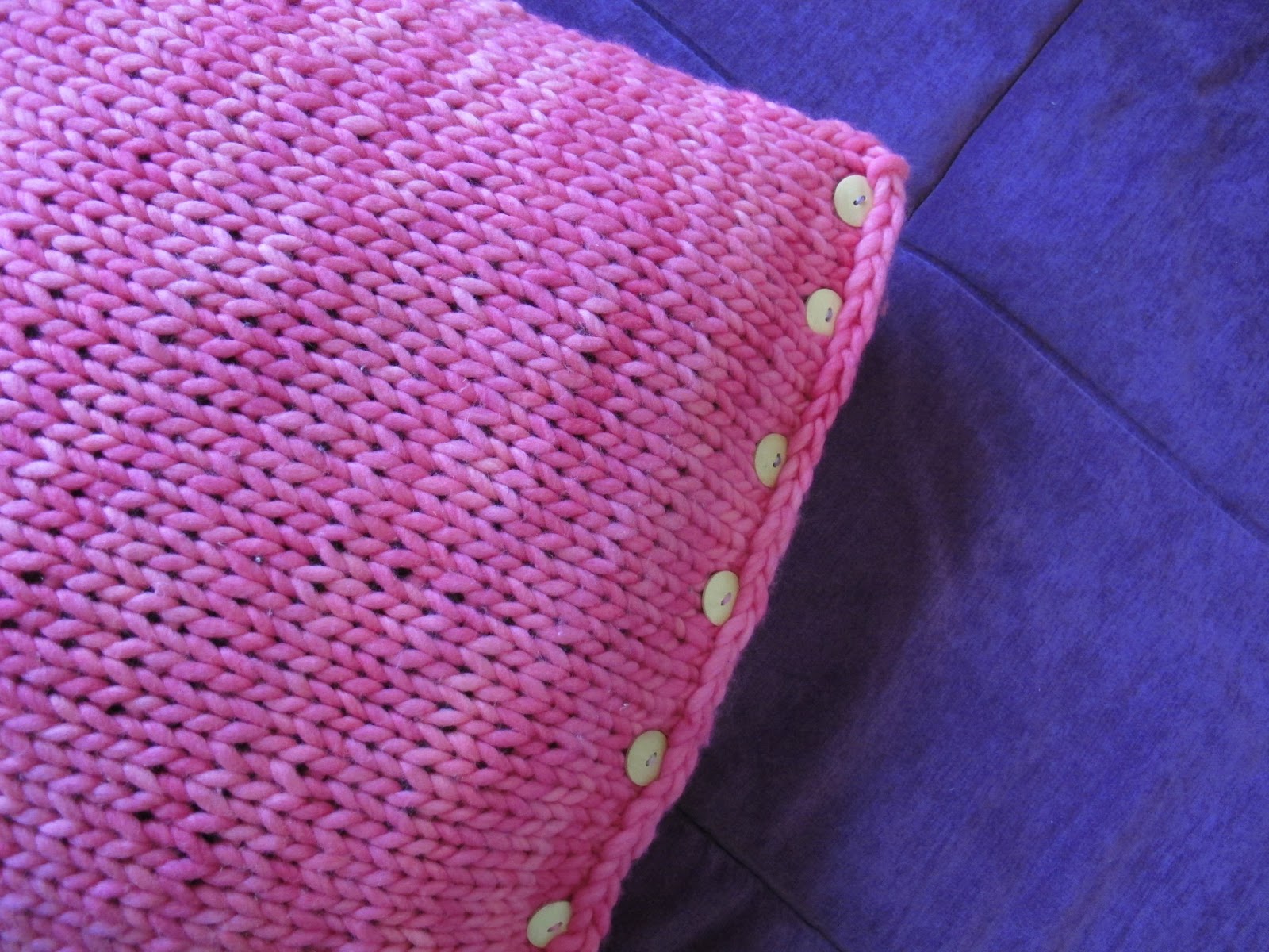 Самая элементарная подушка, которая выглядит, на мой взгляд, эффектно за счет цвета и размера пряжи
