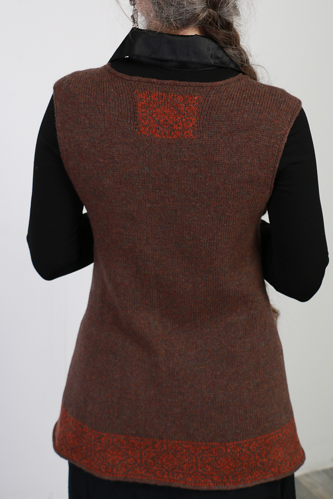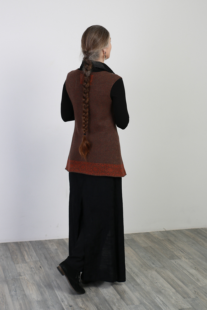 Еще мне кажется, что этот жилет способен пошатнуть устоявшееся мнение о том, что коричневый цвет - скучен и отвратителен. Да здравствует коричневый, живой и прекрасный!
