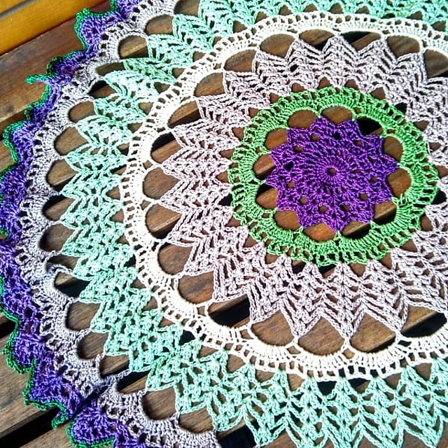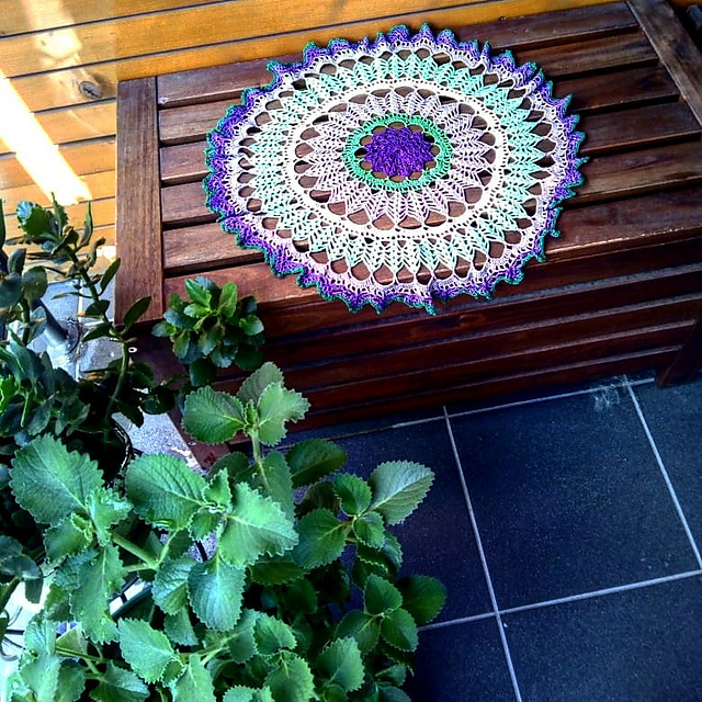 и напоследок - ещё одна законченная вещь лета. нитки Макси (Madame Tricote Paris Maxi) остатки Ириса и тонкого льна, крючок 3 мм. вообще-то это должна была быть скатерть, но у меня лопнуло терпение, и она осталась просто большой салфеткой :)