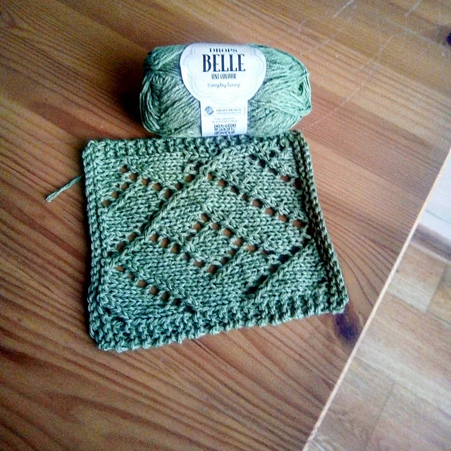идея мне показалась хорошей, тем более что у меня есть бледно-зелёная же пряжа Drops Belle. или можно использовать любой подходящий по цвету хлопок...