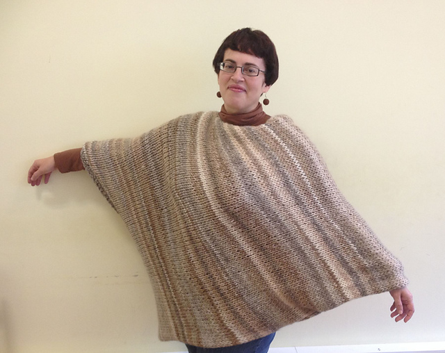 почти 10 лет назад я связала себе единственное пончо. вещь примечательна тем, что связана на ещё более толстых спицах, чем в моём предыдущем посте :) то есть вязать было ещё проще и быстрее. я просто связала прямоугольник и сшила его по краям, оставив дырки для головы и рук.