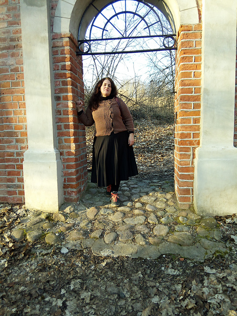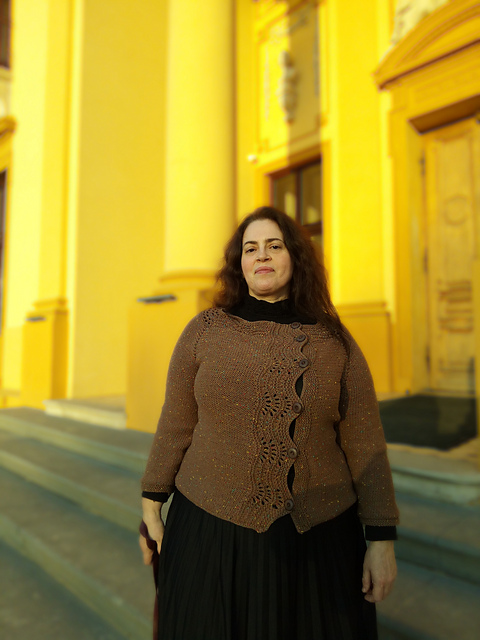 Спицы 4, 5 и 4 для воротника и планок. Росток в конце кокетки. По описанию связаны только ворот и планки, остальное по моим меркам. Так что "по мотивам" Левенвика от Gudrun Johnston.