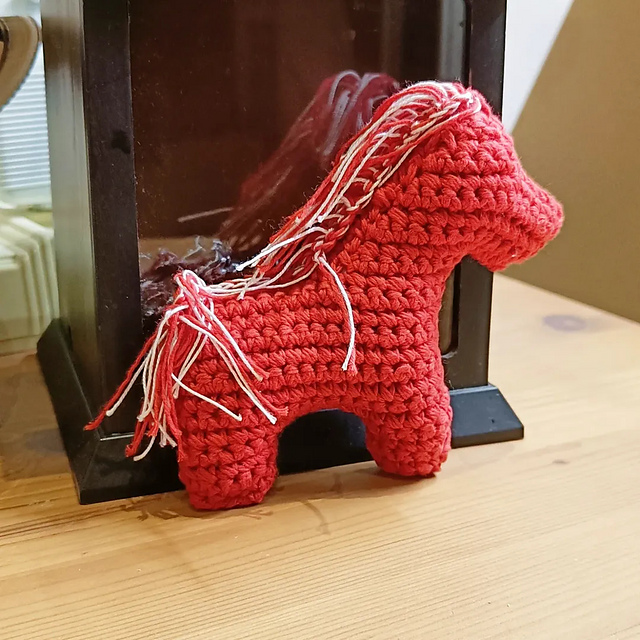 и, наконец - Конь беспредела. Нитки синтетические YarnArt Macrame, а по совету Юлии я использовала для гривы - белый хлопок, уздечка из бисера. одноосторонний, я его накрахмалила, но всё равно не идеально твёрдый. но теперь хоть не закручивается :) висит на ёлке