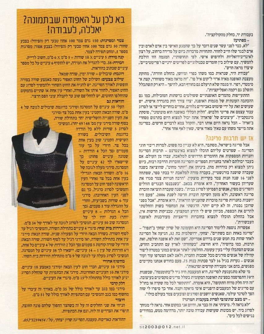 Мои хозяева принесли газету на прошлой неделе, и там было приложение, называется "Сигнон", была интересная статья про возрождение ручного вязания в Израиле:) Я отсканировала и выложила, может вам будет интересно почитать, там про магазины инфа есть.